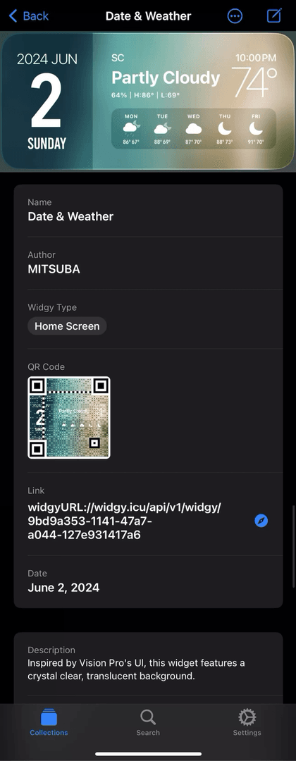 - Shortcut: Widgy To Collections that will parse all of the data and place the screenahots in the appropriate fields as well as paste the widgets url from the system clipboard.